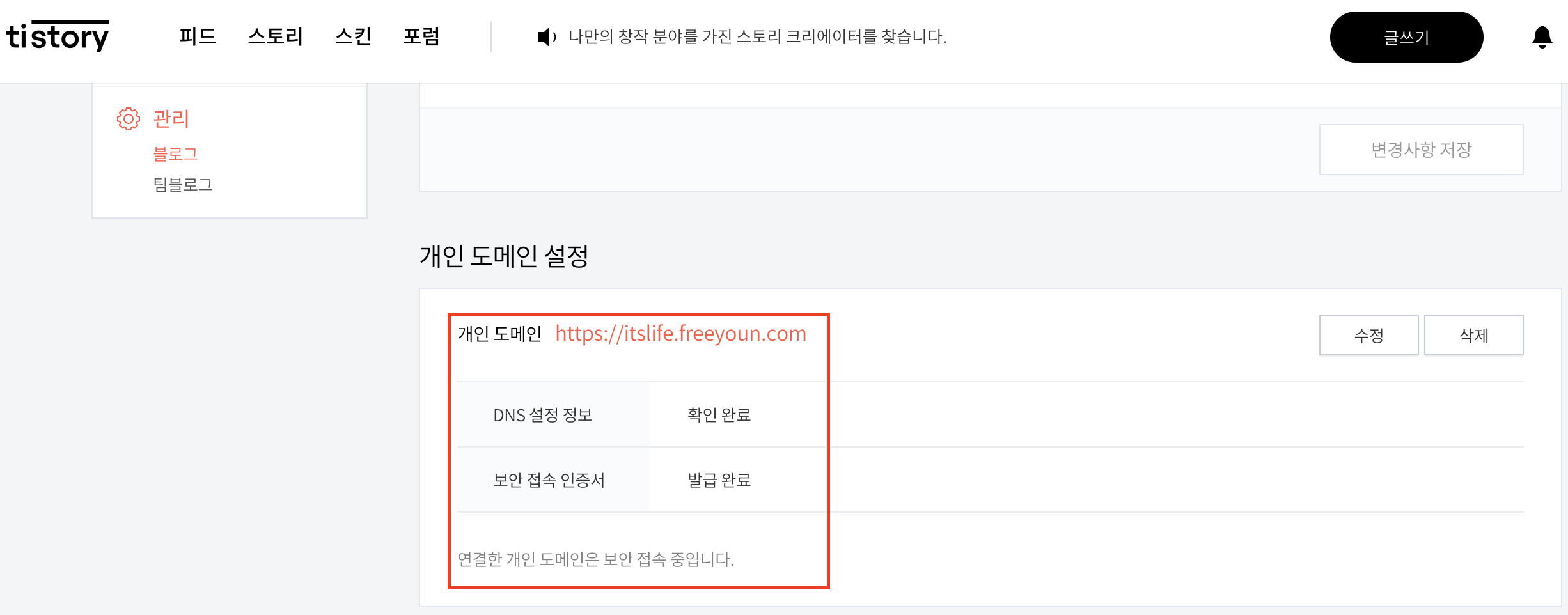 6. 티스토리 - 도메인 연결 완료