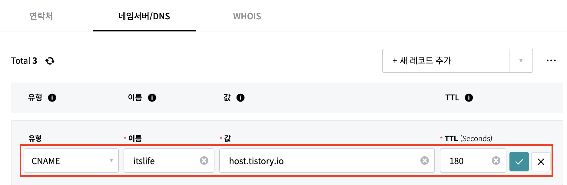 3. 호스팅케이알 - 새 레코드 추가