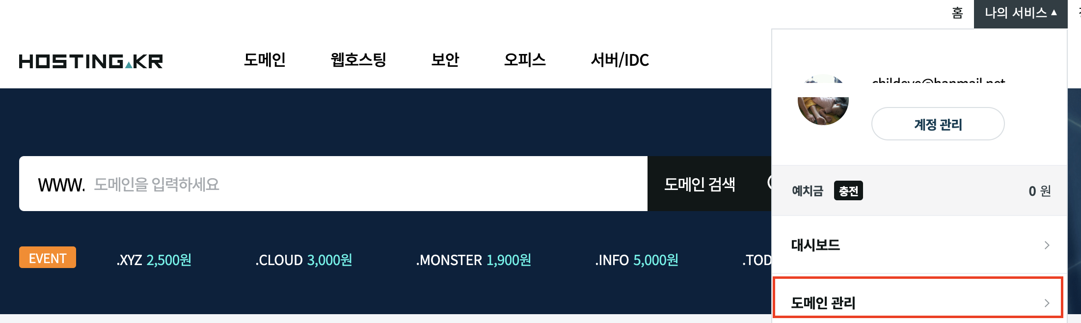 1. 호스팅케이알 - 도메인 관리